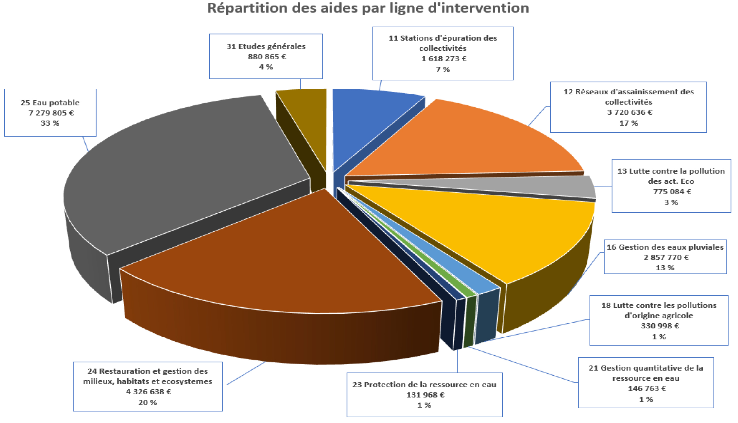 Pour cette session, à noter la part significative des aides en faveur de l’alimentation en eau potable et de la restauration des milieux naturels.